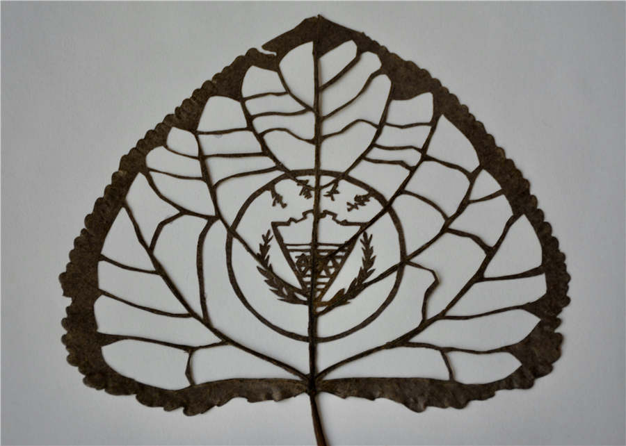 A leaf carving piece by Li Kai.[Photo provided to chinadaily.com.cn] |