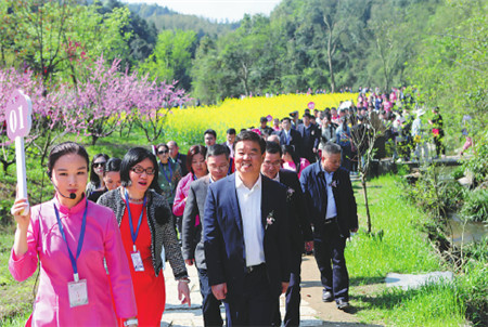 He Baoxiang, vice-governor of Hunan province, pays a visit to the Taohuayuan scenic spot. [Photo provided to China Daily]