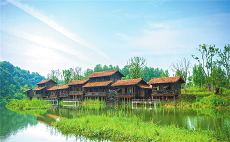 The ancient-styled houses near the Qinxi Stream give visitors an idea of how the people lived more than 2,000 years ago. [Photo provided to China Daily] |