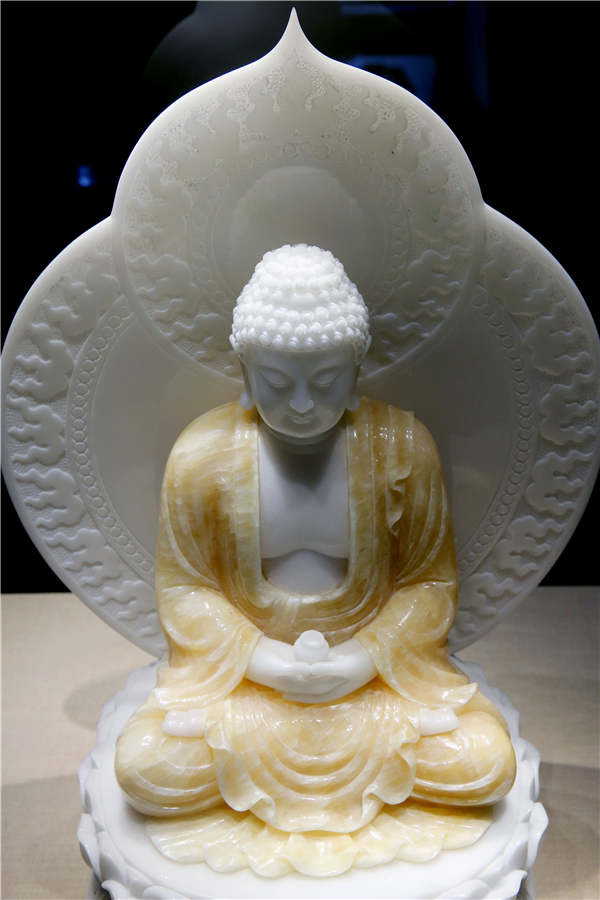 A marble statue of Buddha, by Liu Hongli. [Photo by Jiang Dong/China Daily]