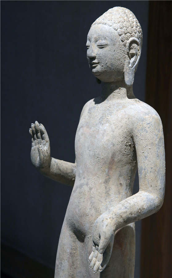 A limestone reproduction by Liu Jianwei of a 6th-century Buddhist sculpture. [Photo by Jiang Dong/China Daily]