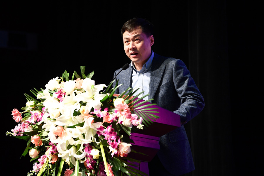 Deputy general manager of the Beijing Tianqiao Performing Arts Center, Jiang Tao, delivers the keynote speech. [Photo provided to chinadaily.com.cn]