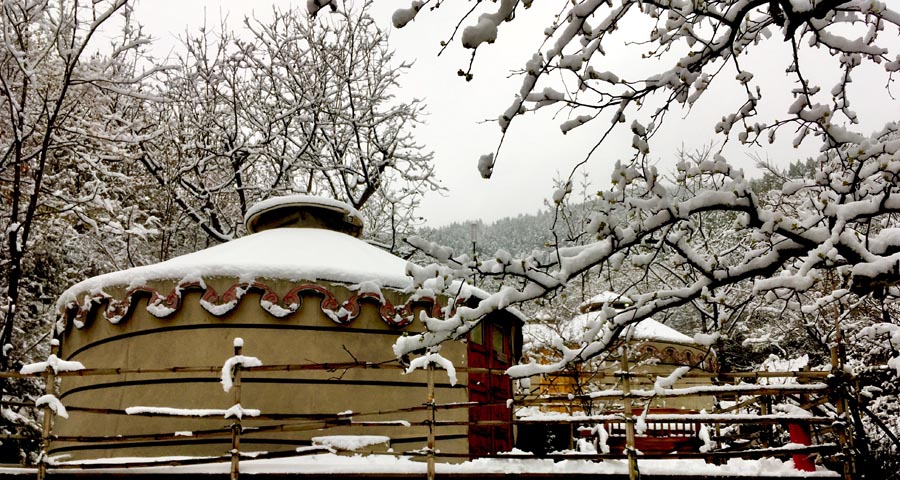 We boiled snow scooped from the top of our yurt for morning coffee.