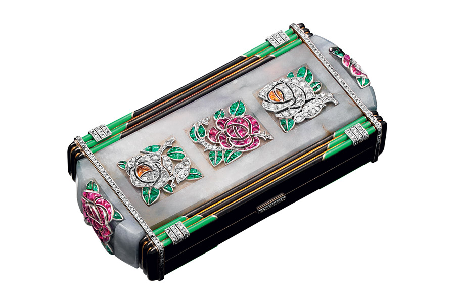 Rose vanity case (gold, jade, enamel, rubies, sapphires, emeralds, diamonds), 1926. [Photo provided to chinadaily.com.cn] |