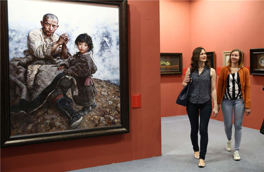 Visitors view exhibits at the Art Beijing 2018 exhibition in Beijing on May 1, 2018. [Photo by Zou Hong/Asianewsphoto]