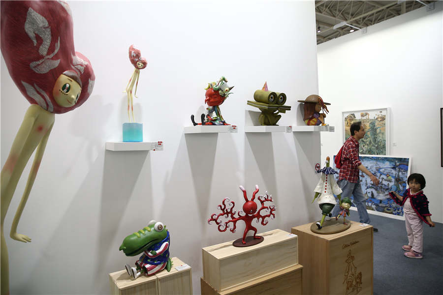Visitors view exhibits at the Art Beijing 2018 exhibition in Beijing on May 1, 2018. [Photo by Zou Hong/Asianewsphoto]