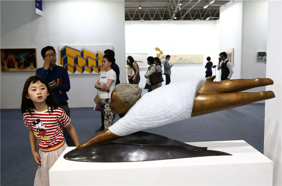 Visitors view exhibits at the Art Beijing 2018 exhibition in Beijing on May 1, 2018. [Photo by Zou Hong/Asianewsphoto]