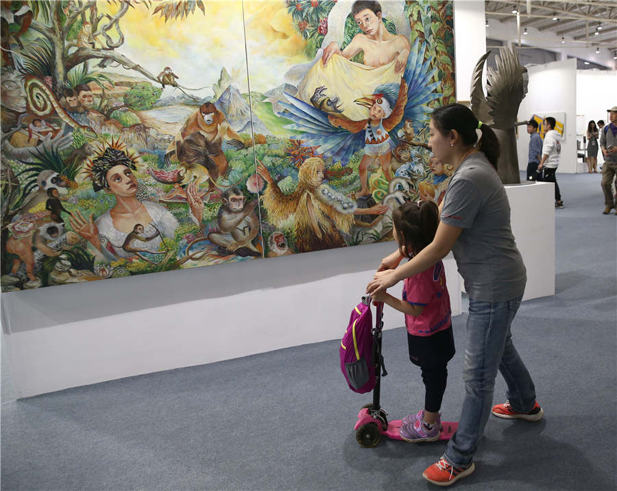 Visitors view exhibits at the Art Beijing 2018 exhibition in Beijing on May 1, 2018. [Photo by Zou Hong/Asianewsphoto]