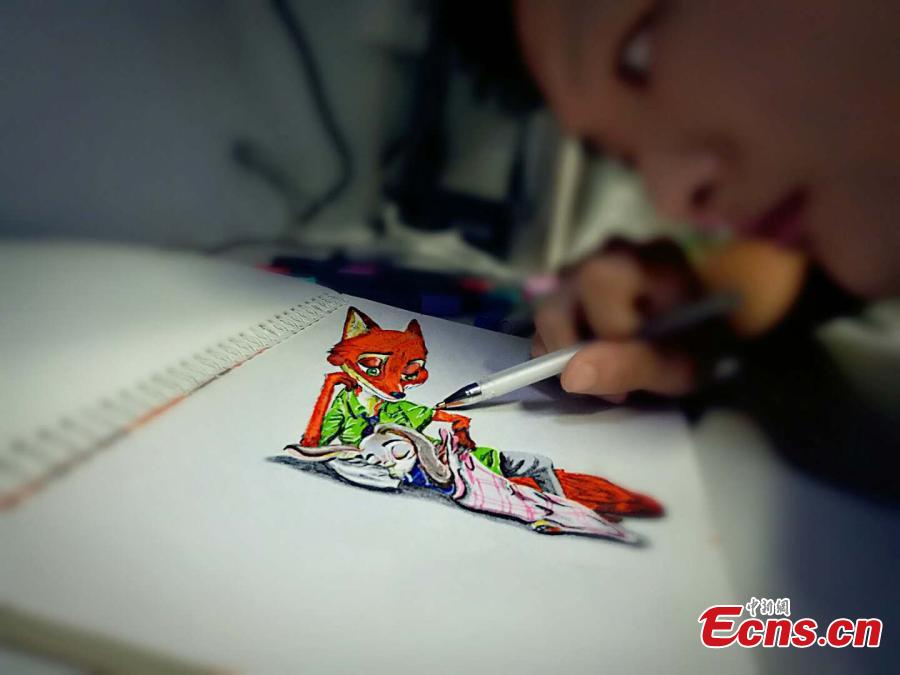 Wang Zhexue, a postgraduate student at Inner Mongolia University of Technology, has created incredibly realistic 3D drawings of animals in order to please his girlfriend, who was said to like pets. Wang has learned about 3D drawing for five years, a hobby to relax his mind in studying science courses. [Photo provided to China News Service]