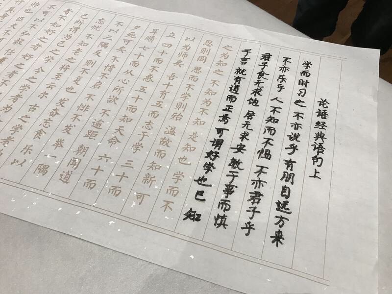 Transcribed classical quotes from The Analects, a record of Confucius' ideas and sayings. [Photo by Xiang Wenjian/chinadaily.com.cn]