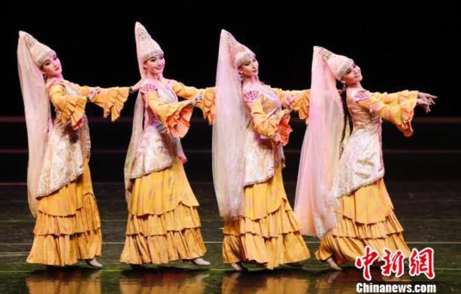 Arular, a gentle and graceful choreography piece presented by Kazakhstan's Astana Ballet, showcases the beauty and elegance of Kazakh women. [Photo/Chinanews.com]