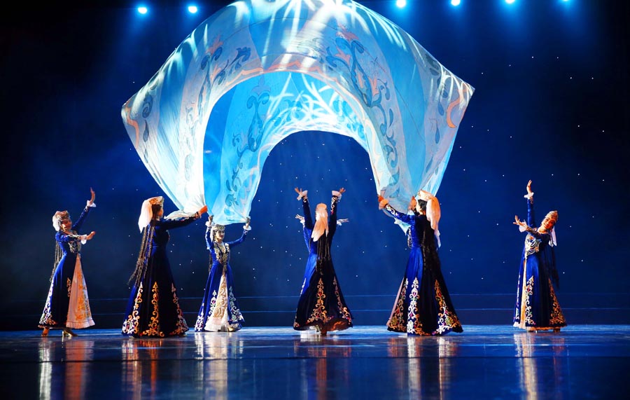 Uzbekistan's National Dance Troupe "Sabo" performs at a re-choreographed piece based on several local dances including Blue Dome, Azeem, Bukhara Dance and Andijan Dance.[Photo provided to Chinaculture.org]