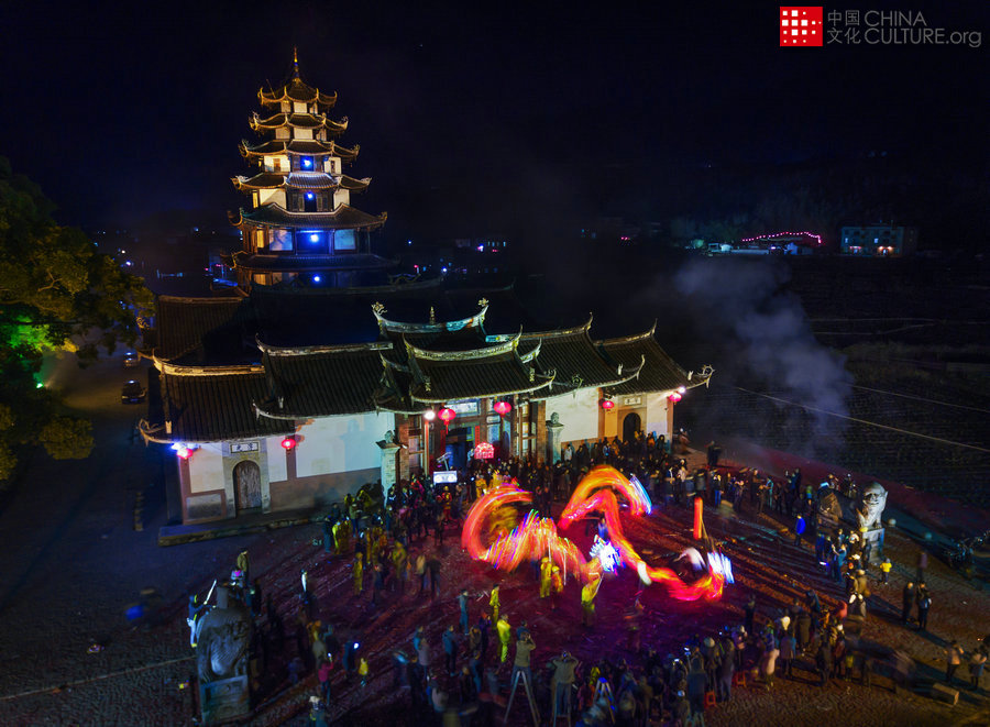 中國福建省龍巖市高陂鎮(zhèn)西陂村當(dāng)?shù)卮迕翊汗?jié)鬧新春習(xí)俗。[攝影:江慶端]
