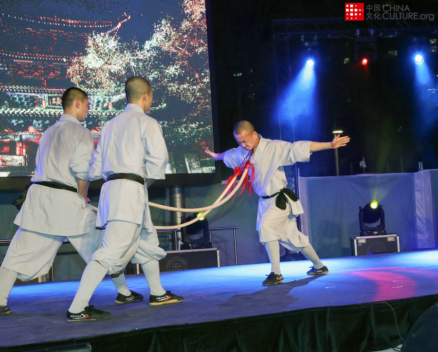 由十二位少林武僧為澳大利亞悉尼的中外游客帶來(lái)了原汁原味的中華傳統(tǒng)藝術(shù)表演、剛猛有力的少林拳法、少林絕技二指禪和獨(dú)門(mén)拳法。[攝影:姜長(zhǎng)庚]