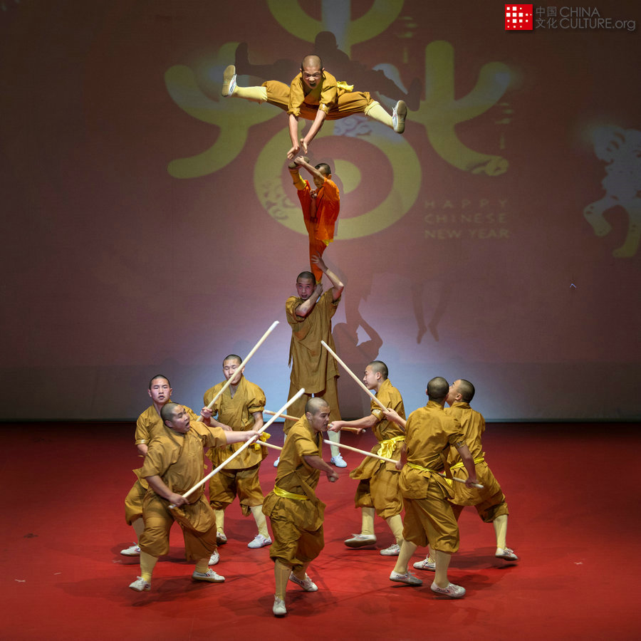 2018年2月8日,在葡萄牙首都里斯本市圣卡洛斯劇院,來自少林寺的武僧在圣卡洛斯劇院表演中國功夫。[攝影:劉小蘭]