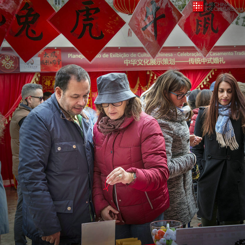 2018年2月11日,在葡萄牙首都里斯本市,Martim Moniz馬丁莫尼斯廣場,葡萄牙當?shù)厝颂暨x春節(jié)掛件。[攝影:劉小蘭]