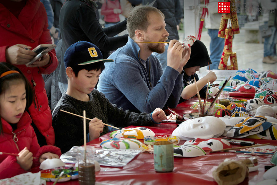 2018年2月11日,在葡萄牙首都里斯本市,外國(guó)人以不同的方式感受 “歡樂(lè)春節(jié)”帶來(lái)的中國(guó)文化,體驗(yàn)中國(guó)的新人結(jié)婚裝扮來(lái)拍照、穿京劇戲服自拍、買(mǎi)春節(jié)掛件、畫(huà)中國(guó)京劇臉譜。[攝影:劉小蘭]