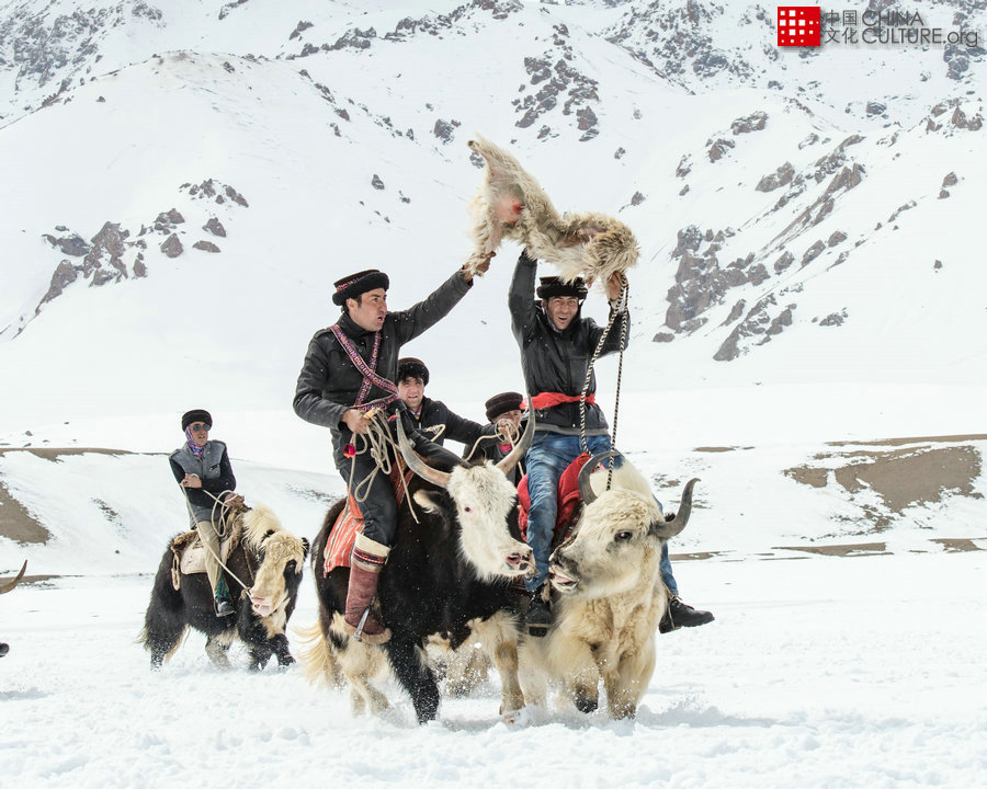 牦牛叼羊,是新疆帕米爾高原海拔4000米左右地區(qū)舉行的一項特殊的體育競技項目。在這兒近半年時間都是大雪封山的地區(qū),每逢新春來臨或舉辦婚禮都有叼羊比賽來慶賀。[攝影:陳錫萍]