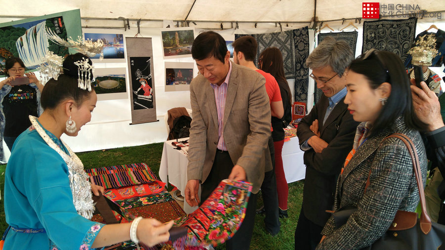 貴州地區(qū)彝族、苗族、布依族等少數(shù)民族特色服裝飾品華麗精致,為哥民眾展現(xiàn)出另一種中國文化色彩。[攝影:孫志恒]
