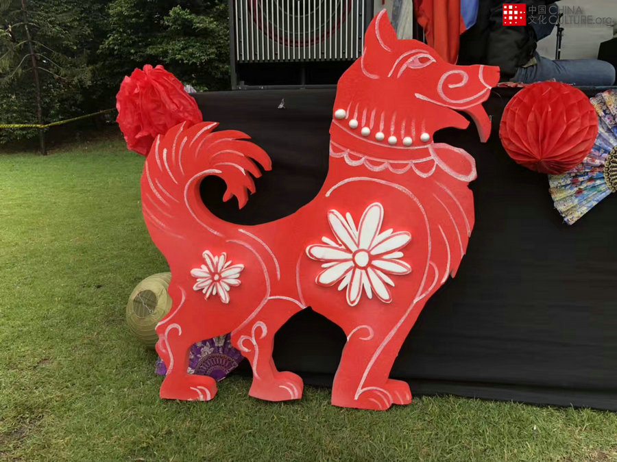 在“歡樂春節(jié)”廟會(huì)上紅紅火火的狗年吉祥物帶來新春的熱鬧氣氛。[攝影:孫志恒]