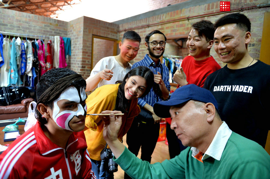 熱愛中國文化的哥倫比亞少年感受京劇畫臉譜