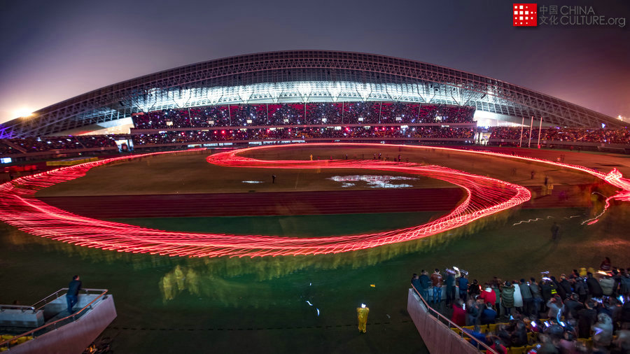 2018年3月2日,浙江省金華市在體育中心慶祝元宵佳節(jié),舉行了板凳龍表演,為市民過新春佳節(jié)送上文化大餐。[攝影:高成軍]