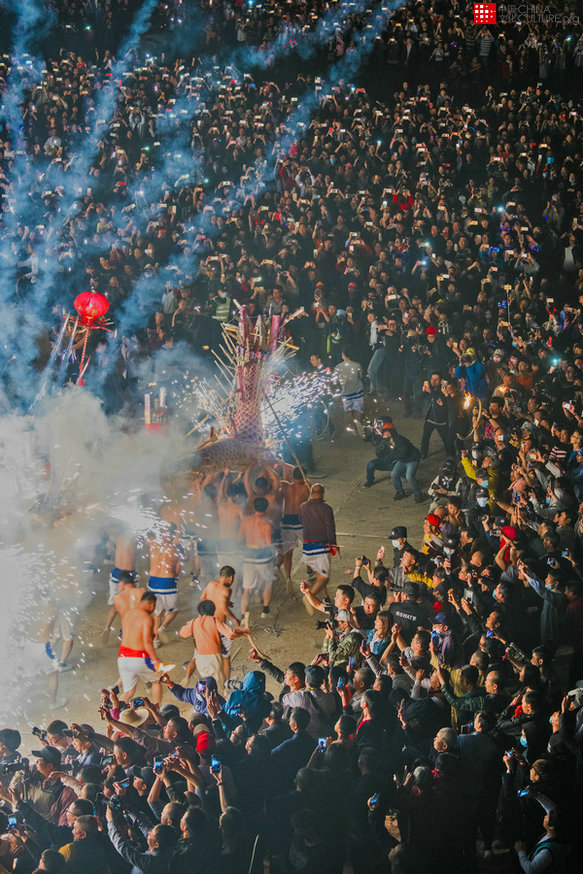 2018年3月2日正月十五,廣東省梅州市豐順縣埔寨鎮(zhèn)埔南村。元宵節(jié)燒火龍活動(dòng)上壯觀的手機(jī)拍客人群。[攝影:王國(guó)臣]