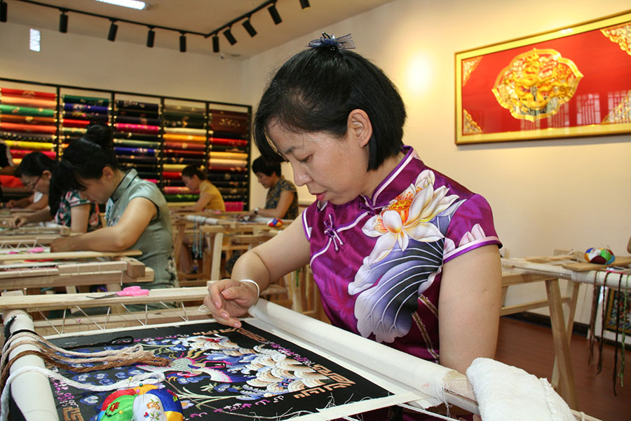 An artist works on embroidery. [Photo by Wu Yong/China Daily]