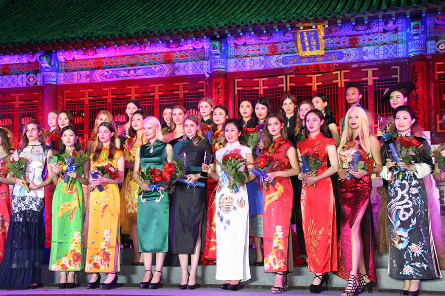 At the 2018 Chinese customs festival of Fushun Manchu, beauties from 16 countries will perform at the Cheongsam Show at the Khan Palace Grand Yamen of Hetula city, Xinbin, Northeast China's Liaoning province. [Photo by Wu Yong/China Daily]
