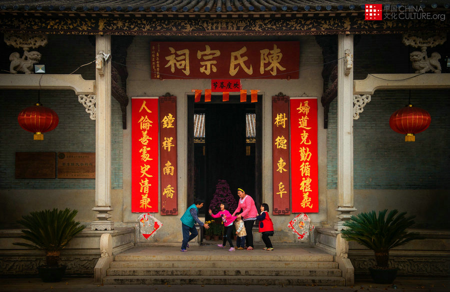 2018年2月25日 拍攝于廣東中山市南朗鎮(zhèn)。宗祠門前,是族姓日常游玩、拉家常的休閑場所,圖為春節(jié)期間,村民在做游戲的快樂場景。[攝影:羅新榮]
