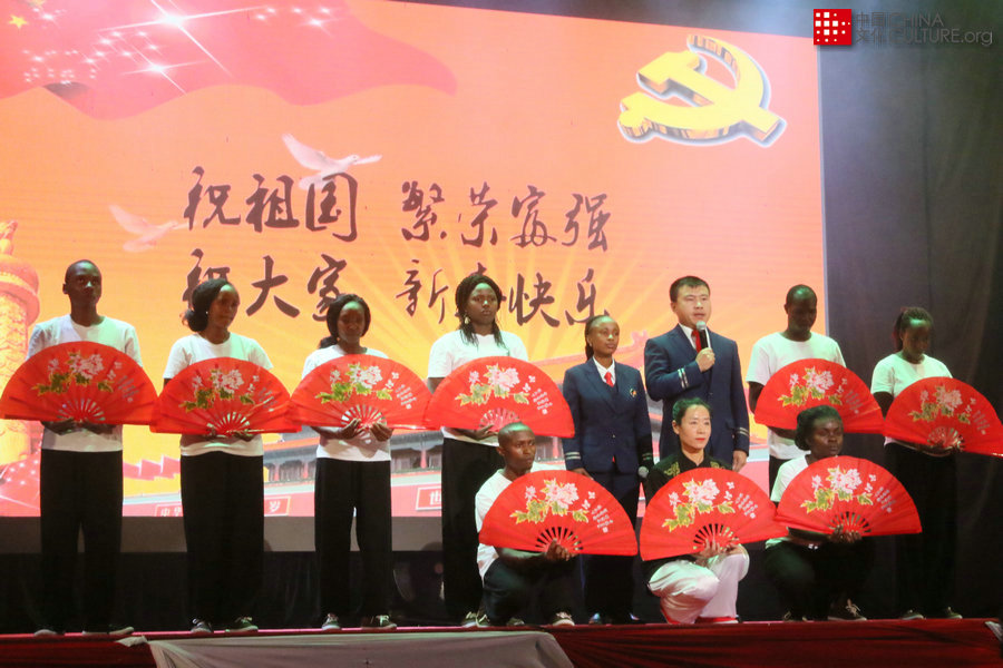 2018年3月3日,首屆肯尼亞華人春晚在內(nèi)羅畢大學(xué)孔子學(xué)院舉行,來自蒙內(nèi)鐵路運(yùn)營公司的中肯員工表演情景劇《出彩蒙內(nèi)運(yùn)營人》。[攝影:柳洪杰]