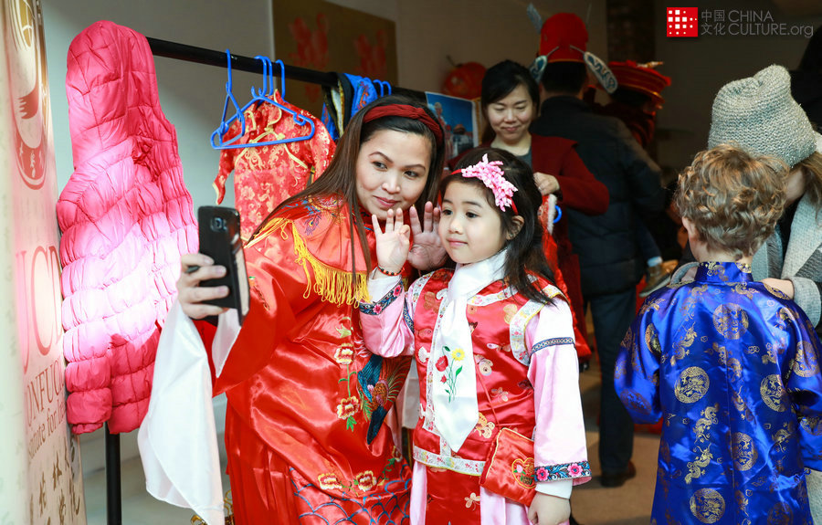 愛爾蘭都柏林孔子學(xué)院在當(dāng)天新春廟會中給大家提供了中國傳統(tǒng)服裝試穿環(huán)節(jié),第一次穿中國傳統(tǒng)服裝,大家都一定要先來張自拍。[攝影:劉延延]