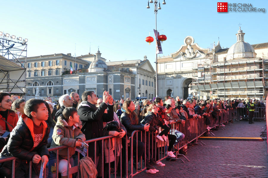 2018年2月10日,意大利羅馬舉辦“歡樂春節(jié)”巡游活動(dòng),吸引意大利民眾熱情觀看。[攝影:張凌霄]