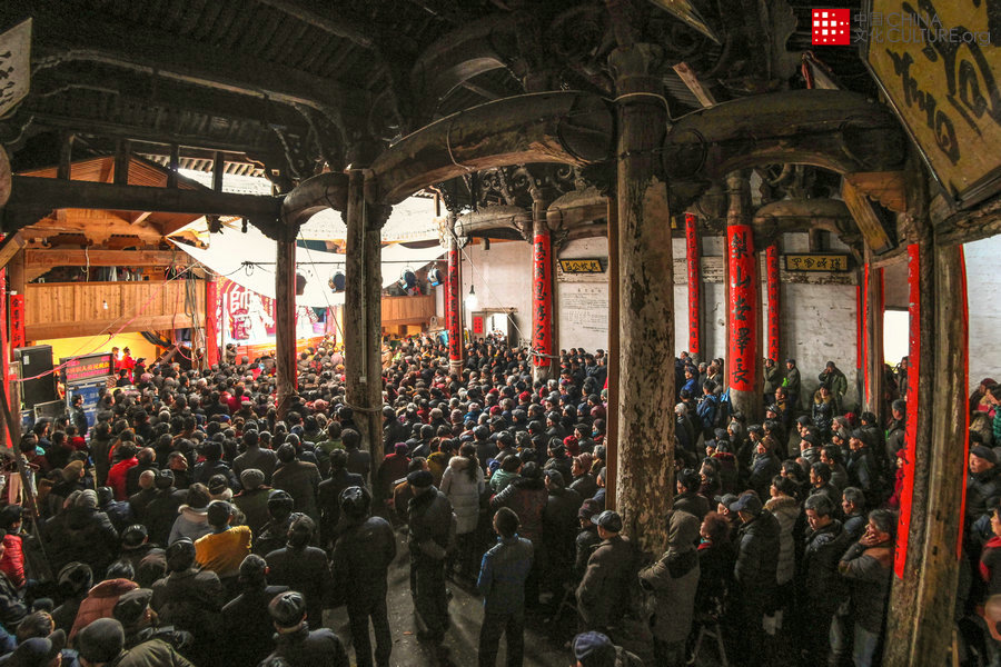 春節(jié)新年,浙江老百姓看大戲。[攝影:賀勛毅]