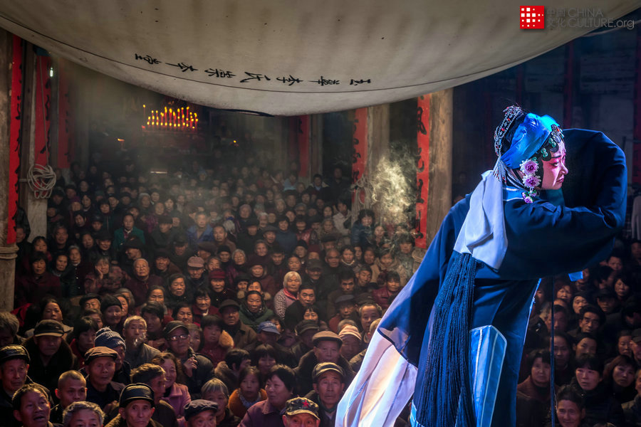 春節(jié)新年,浙江老百姓看大戲。[攝影:賀勛毅]