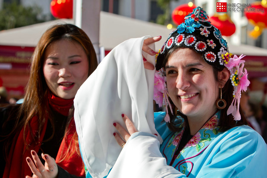 2月10號(hào),由中國(guó)駐葡萄牙使館主辦的歡樂(lè)春節(jié)活動(dòng)在葡萄牙首都里斯本如期舉行,喜慶中國(guó)年。各僑團(tuán)、華人華僑組織在華人最聚集的街上游行,其中淑敏語(yǔ)言文化中心師生穿著的鮮艷戲曲服飾引來(lái)許多外國(guó)人關(guān)注,無(wú)疑成為大亮點(diǎn)。[攝影:金潔]