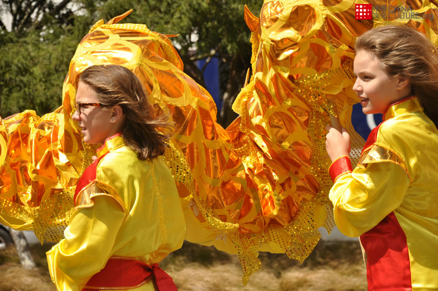 惠靈頓東方女子中學(xué)女生專注于中國舞龍表演。[攝影:方華]