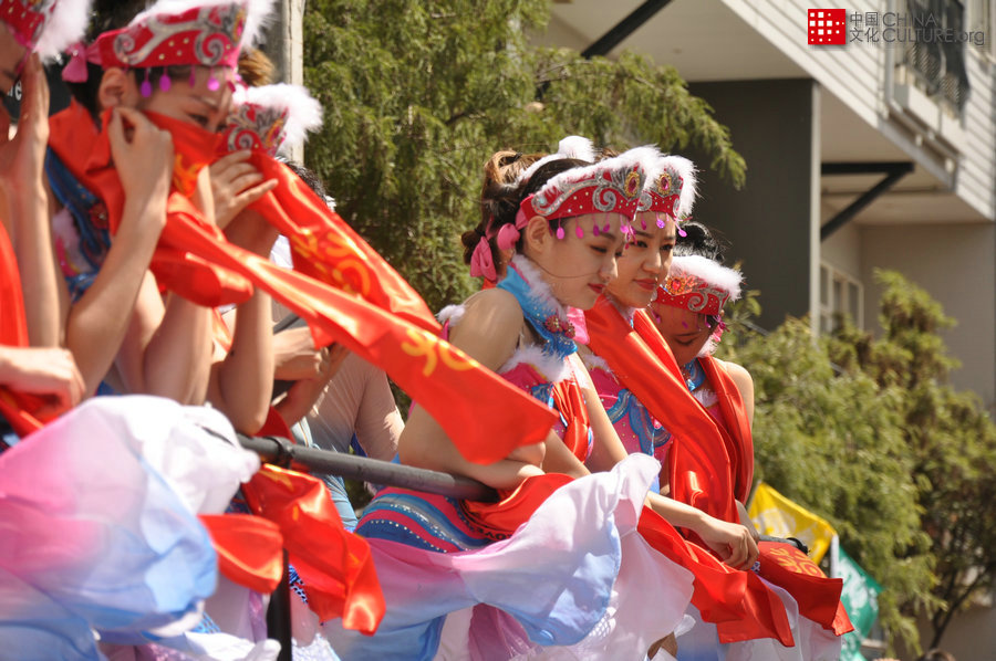 中國龍江歌舞表演亮相惠靈頓2018“歡樂春節(jié)”花車巡游國際方陣。[攝影:方華]