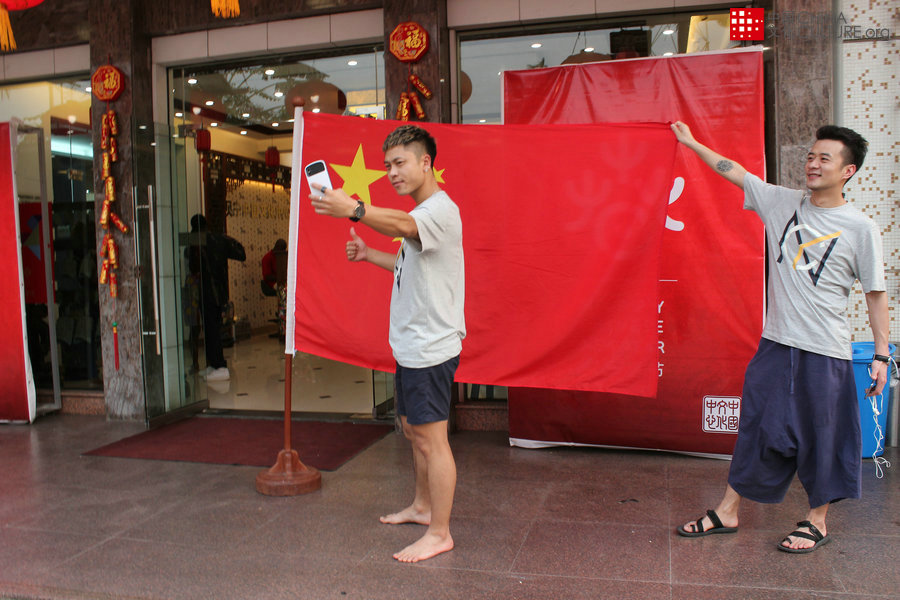 Artistic troupe GUIZHOU came to Cotonou and photographed with the Chinese flag on the day of the official launch of the Chinese New Year party in Cotonou. [Photo by Zounyekpe Coffi Seraphin]