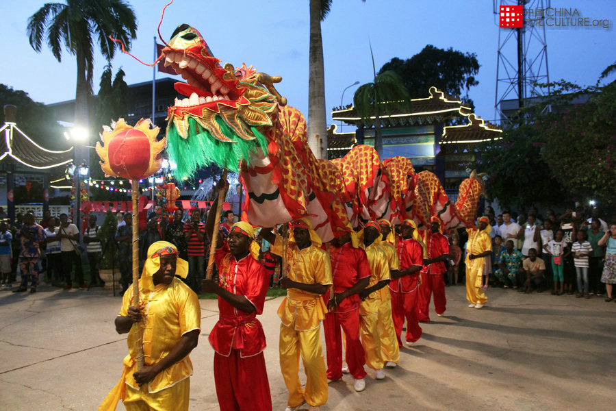 Chinese Cultural Center Martial Arts Performers Perform Dragon Dance on Spring Day Market Day. [Photo by Zounyekpe Coffi Seraphin]