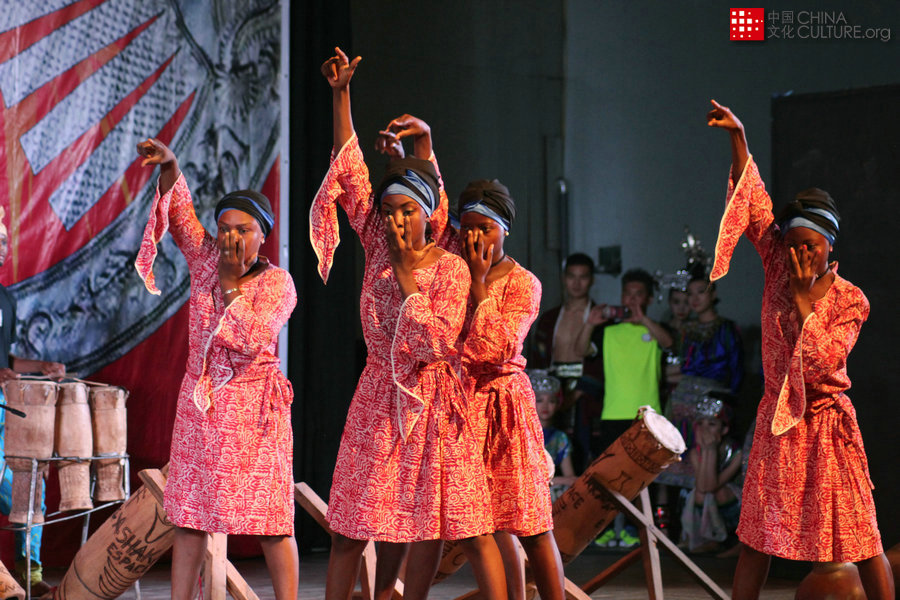 Performance of the ACHAKATTA artistic troupe from Porto-Novo at the FITHEB Hall in Cotonou. [Photo by Zounyekpe Coffi Seraphin]