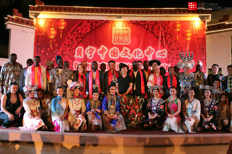 Guizhou Art Troupe pose for a group photo with the Director of the China Cultural Center and distinguished guests on the official launch day of the Chinese New Year event. [Photo by Zounyekpe Coffi Seraphin]