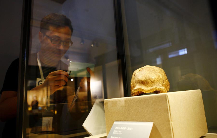 A skull specimen on display at Shanghai History Museum on July 16, 2018. [Photo/Xinhua]