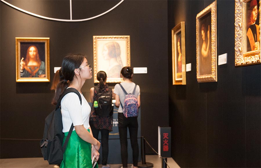 A visitor views paintings by Leonardo da Vinci. [Photo provided to China Daily] |