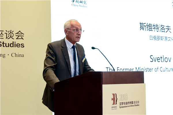 Svetlov Boris, former minister of culture in Belarus, delivers a speech at the opening ceremony of the 2018 Symposium on China Studies in Beijing, July 23, 2018. [Photo provided to Chinaculture.org] |
