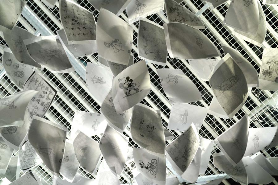 Photo taken on July 23, 2018, shows animation drawings on a wall at an animation exhibition at National Museum of Classic Books in Beijing, capital of China. Over 400 original animation artworks and celluloid pieces were displayed in this exhibition. [Photo/Xinhua]
