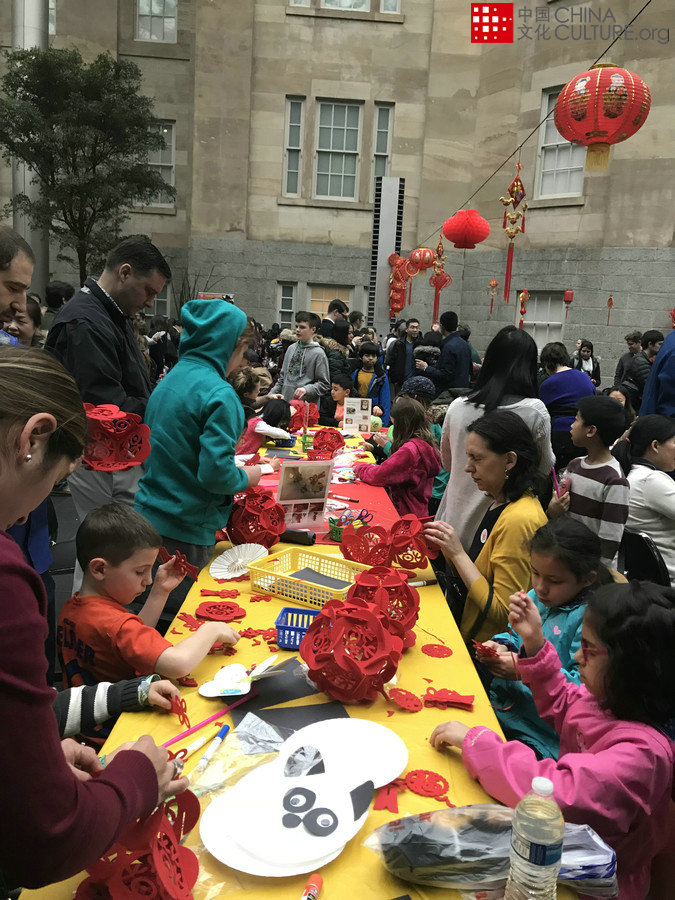 2018年2月10日美國史密森學(xué)會美國藝術(shù)博物館舉辦“中國新年家庭日”活動。圖為美國家庭在學(xué)習(xí)手工制作。[攝影:駐美國大使館文化處]