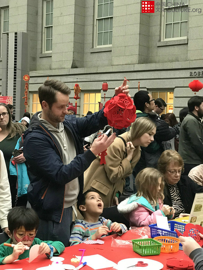 2018年2月10日美國史密森學(xué)會美國藝術(shù)博物館舉辦“中國新年家庭日”活動。圖為美國家庭在學(xué)習(xí)制作春節(jié)飾品。[攝影:駐美國大使館文化處]