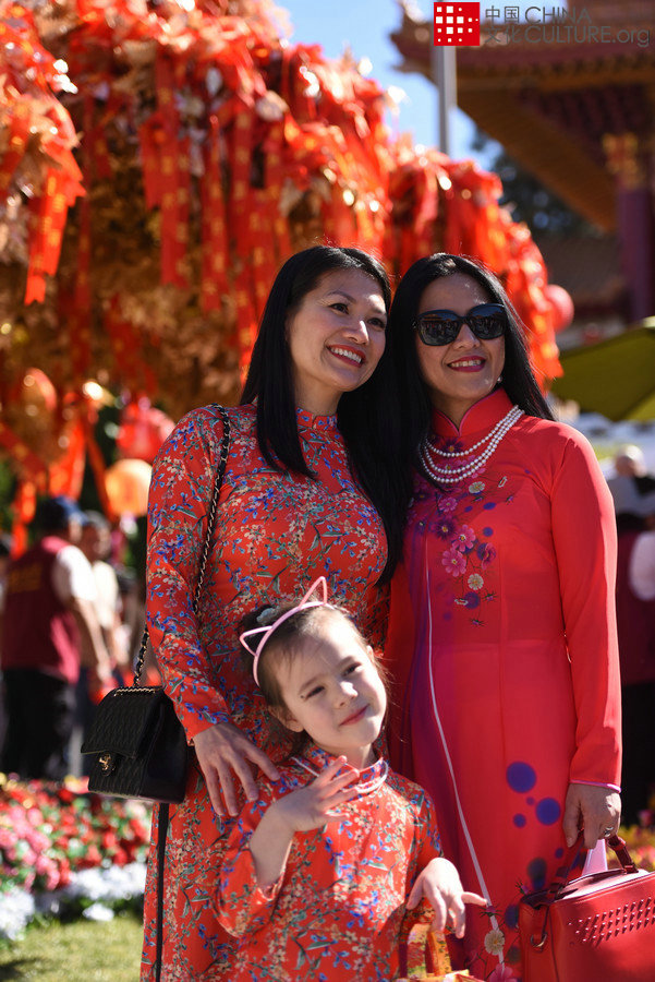 中國農(nóng)歷新年大年初一,位于美國加州洛杉磯的華人佛教圣地——佛光山西來寺2月16日舉辦豐富多彩的活動(dòng),歡度新春佳節(jié),展示中華文化。圖為前來過年的亞裔游客。