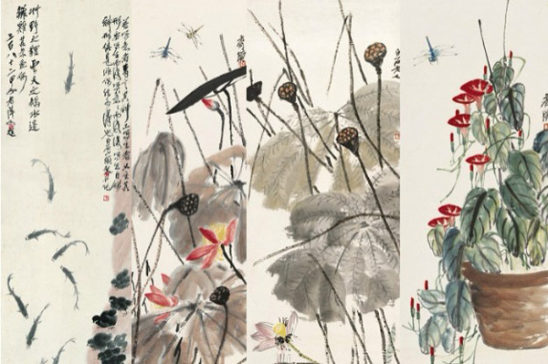 A combo photo of Qi Baishi's painting. [Photo provided to China Daily] |